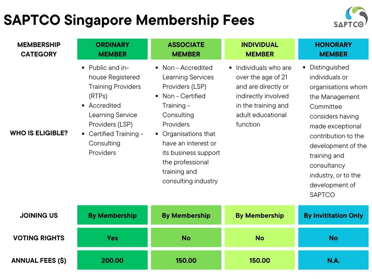 Recognising the need to have a wholistic representation of the training, adult educational and consulting industry, SAPTCO has different membership tiers catered to the various industry stakeholders.